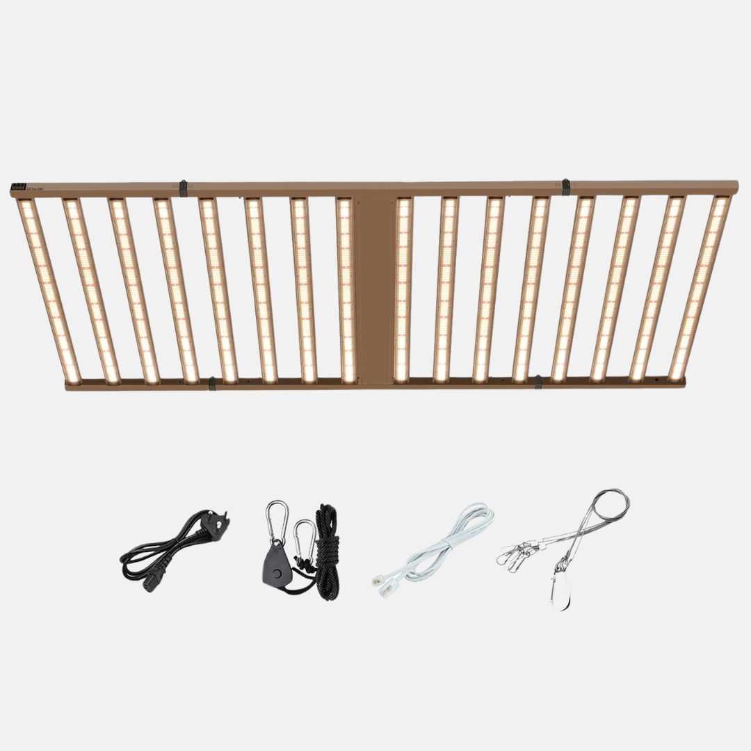 - Bi-fold design & 2.1m long: The 1600W LED grow light adopts a double-folding design, which is easy to transport and install. After unfolding, it can be hung directly for use.